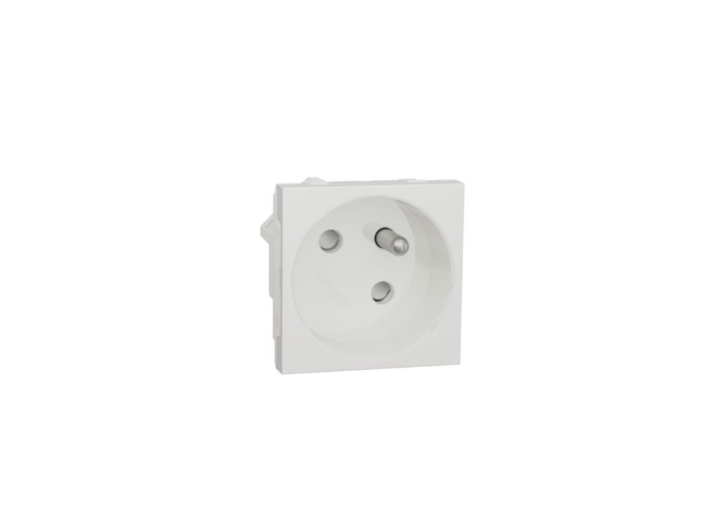 SCHNEIDER Unica - Zásuvka 45° 250V/16A 2P+E, clonky, bezšroubová, Bílá