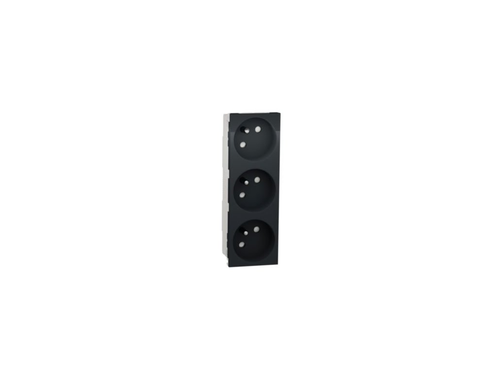 SCHNEIDER Unica - Zásuvka trojitá 45° 250V/16A 3x2P+E, clonky, bezšroubová, Antracit