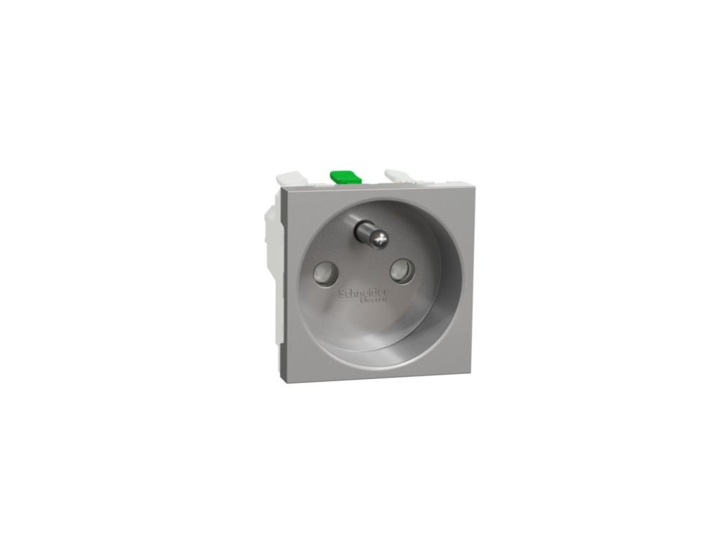 SCHNEIDER Zásuvka Unica 250V/16A 2P+E, clonky, bezšroubová, aluminium