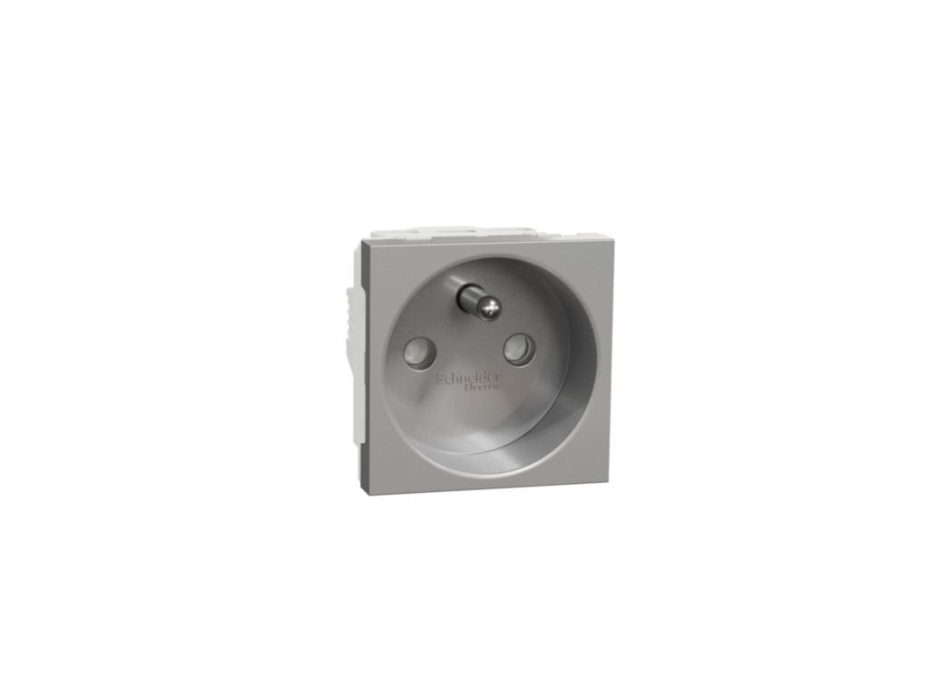 SCHNEIDER Zásuvka Unica 250V/16A 2P+E, clonky, šroubová, aluminium