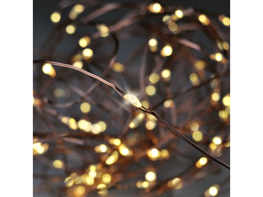 Solight vánoční řetěz měděný, 50x mini LED, 5m, 3 x AA, teplé světlo