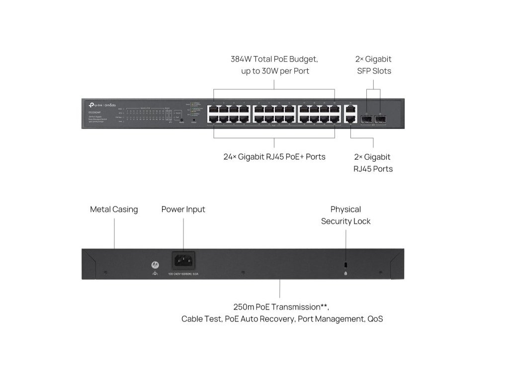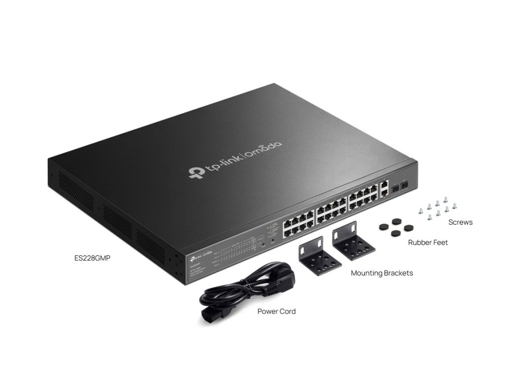 Switch TP-Link ES228GMP 2x GLan, 24x GLan s PoE+, 2x SPF, 384W, 19", Omáda SDN