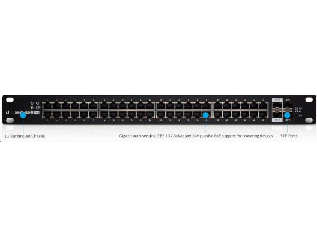 UBNT EdgeSwitch ES-48-500W [70Gbps, 500W, aktivní (802.3af/at) i pasivní (24V) PoE, 2xSFP, 2xSFP+, L2/L3]