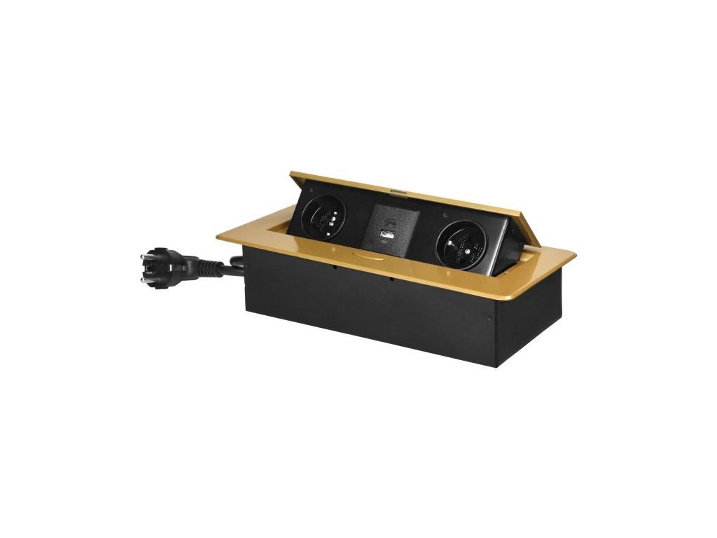 Výklopný blok zapuštěný ORNO OR-GM-9035/C, 2x 230V, 2x USB (A+C type; 3.6A), barva zlatá