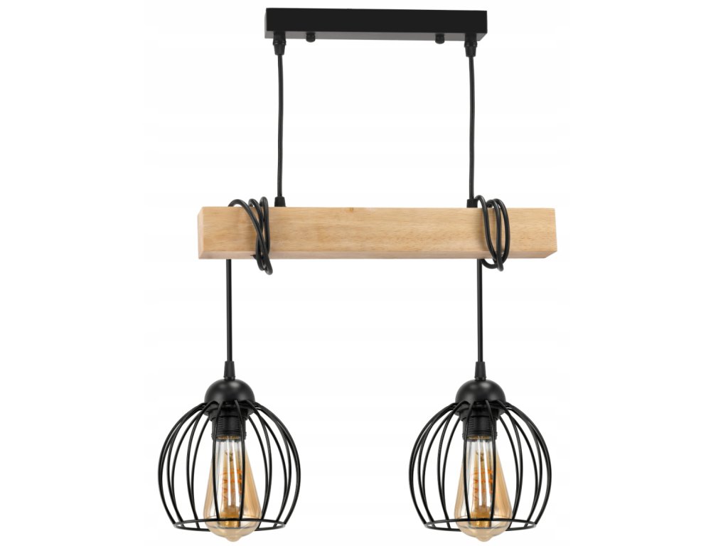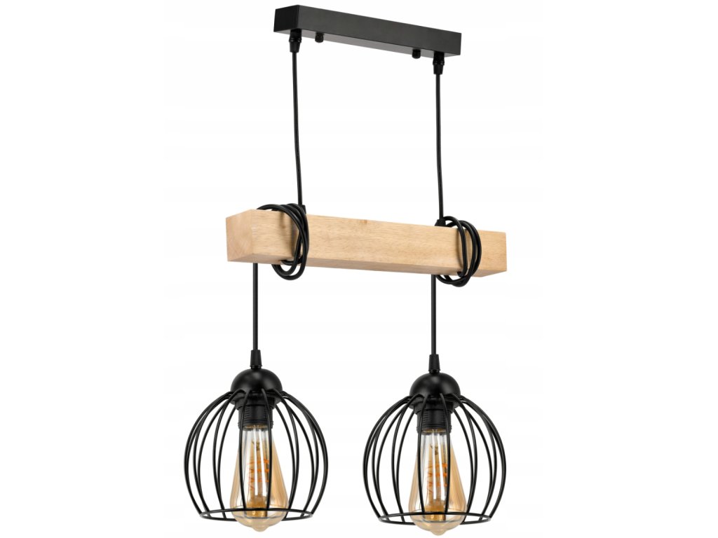 Závěsné stropní svítidlo LED dřevěný trám 2xE27 Lustr Wire ball