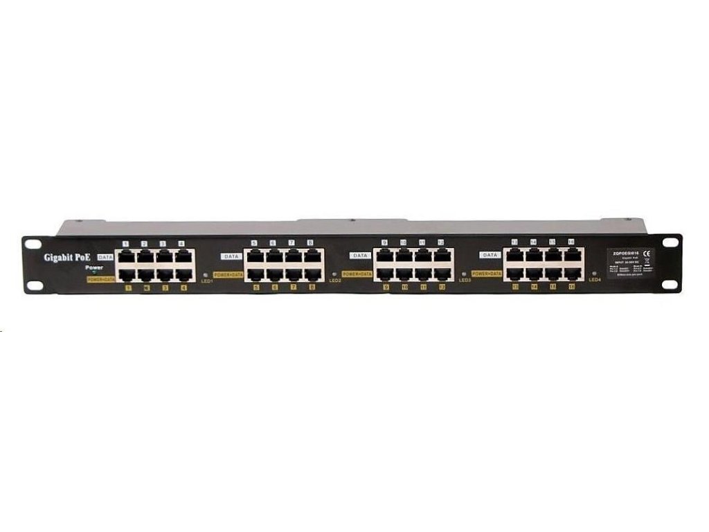POE injektor aktivní/pasivní - 16x 1 Gb/s, stíněný panel, 802.3af/at