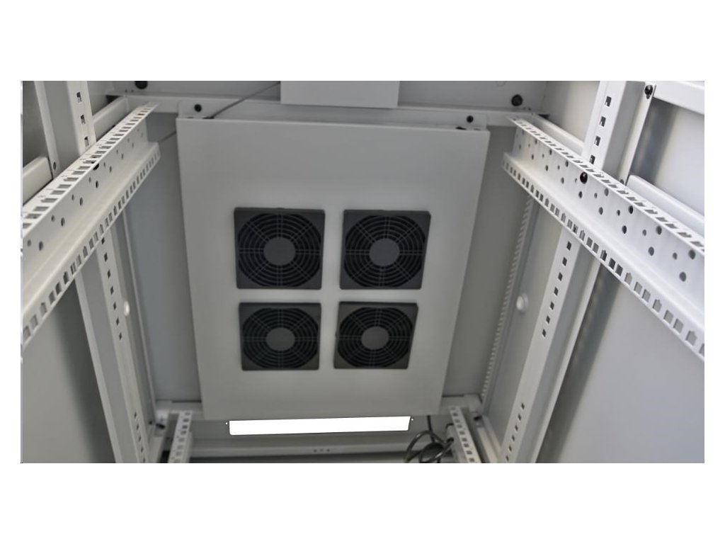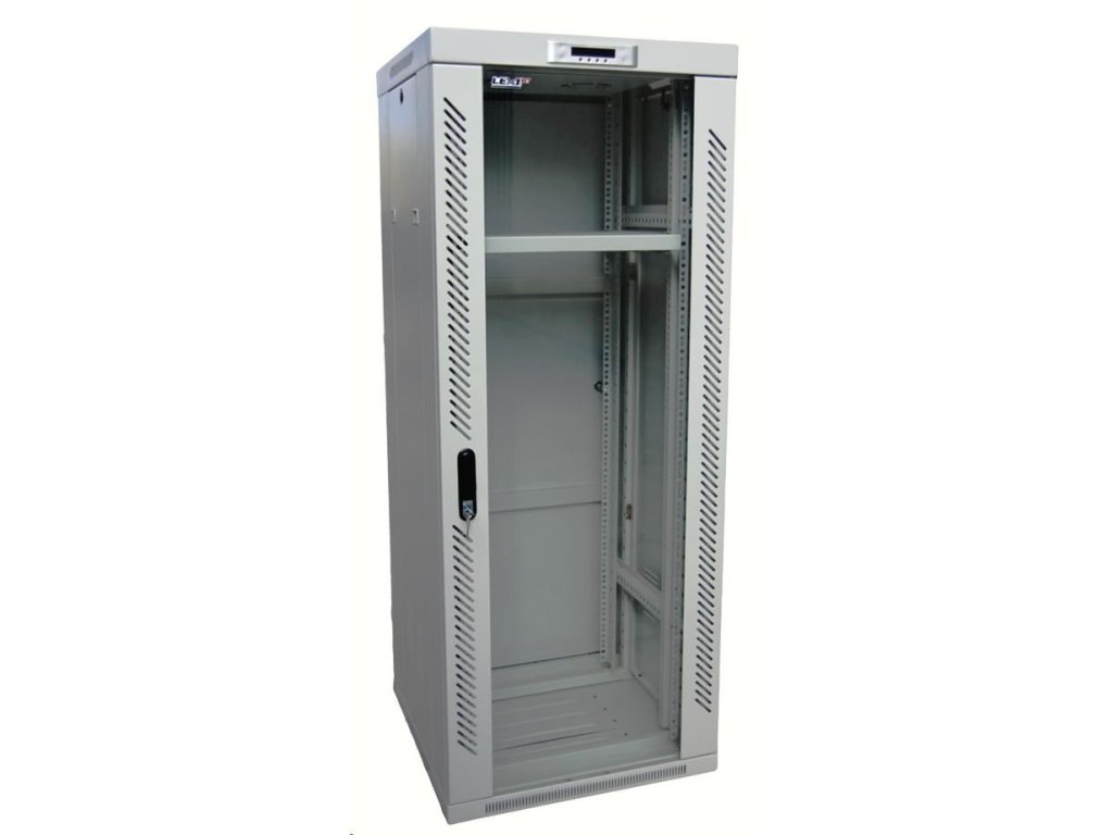 LEXI-Net 19" stojanový rozvaděč 27U 600x800 rozebiratelný, ventilační jednotka, termostat, kolečka, 600kg, sklo, šedý