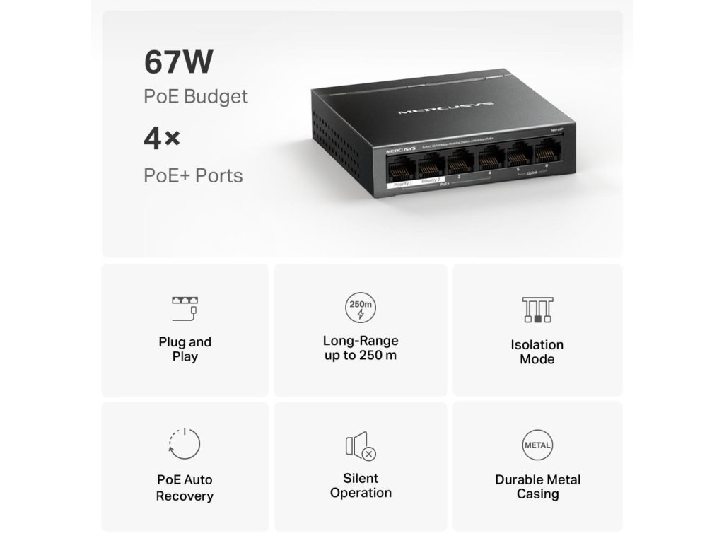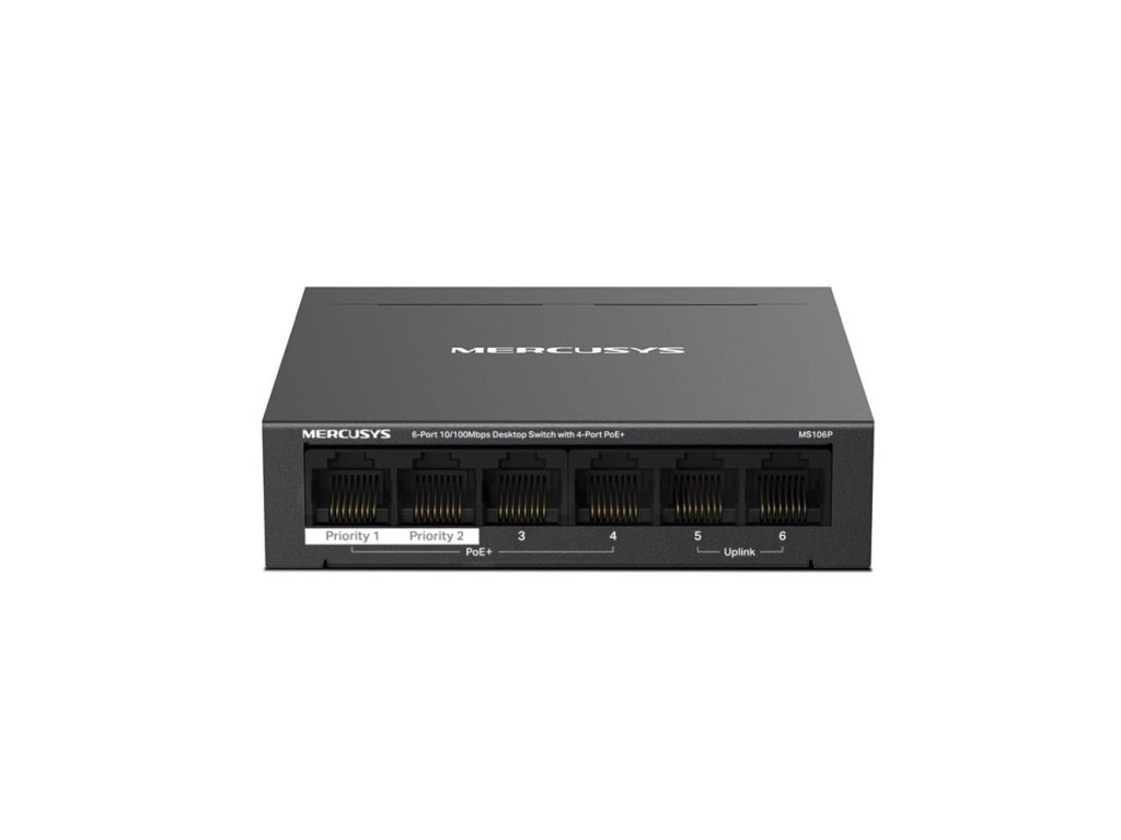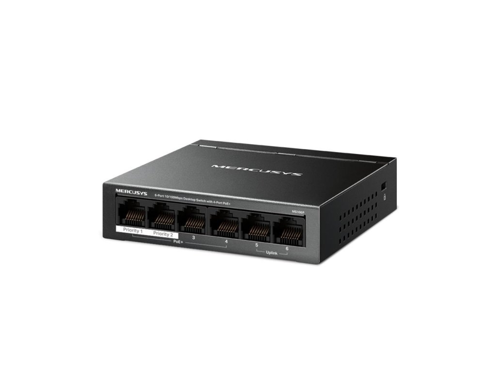 MERCUSYS switch MS106P (6x100Mb/s,4xPoE+,67W,fanless)