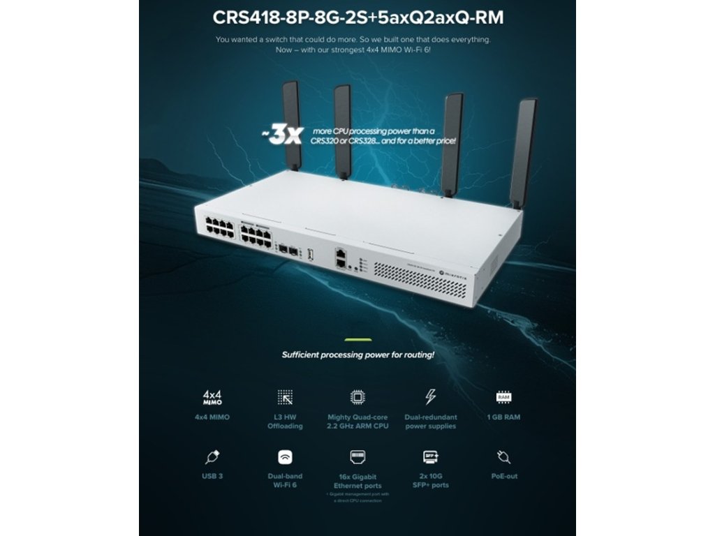MikroTik CRS418-8P-8G-2S+5axQ2axQ-RM, Cloud Router Switch