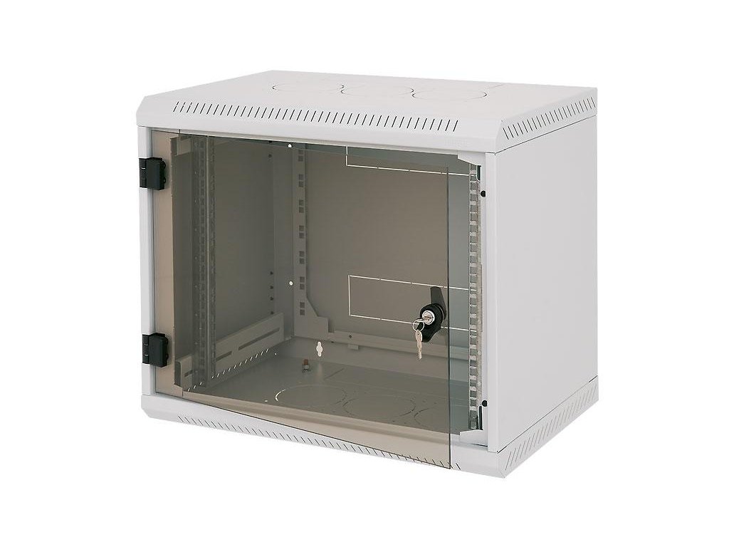 Rack Triton 19" jednodílný 12U/400mm prosklené dveře, šedý