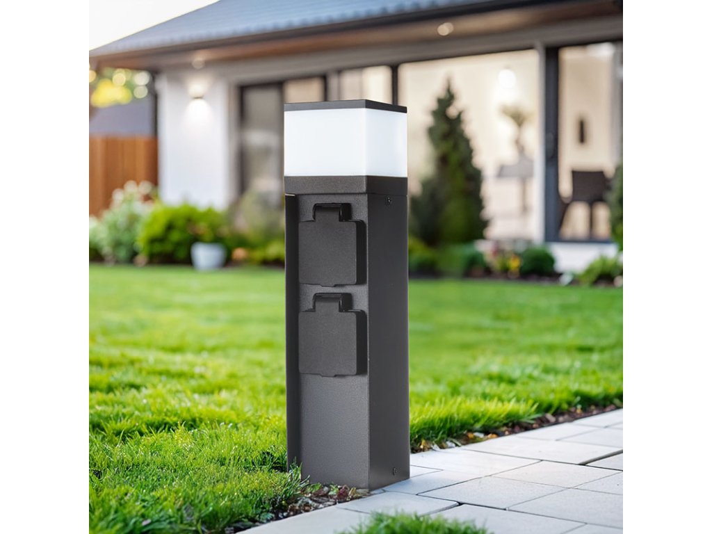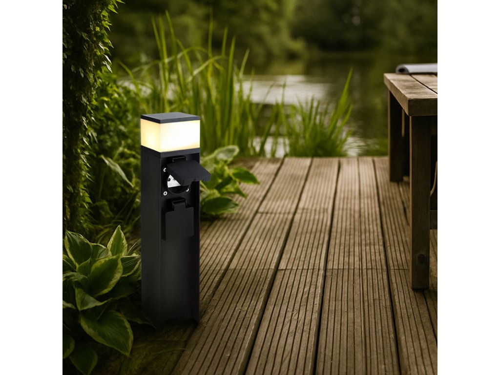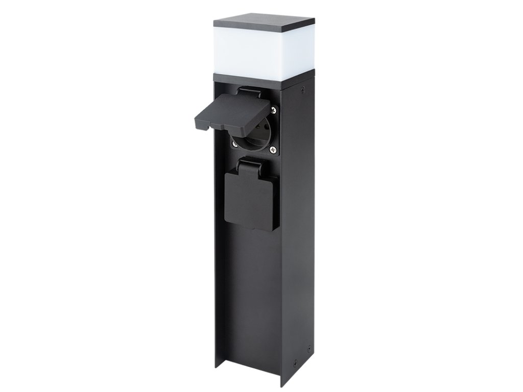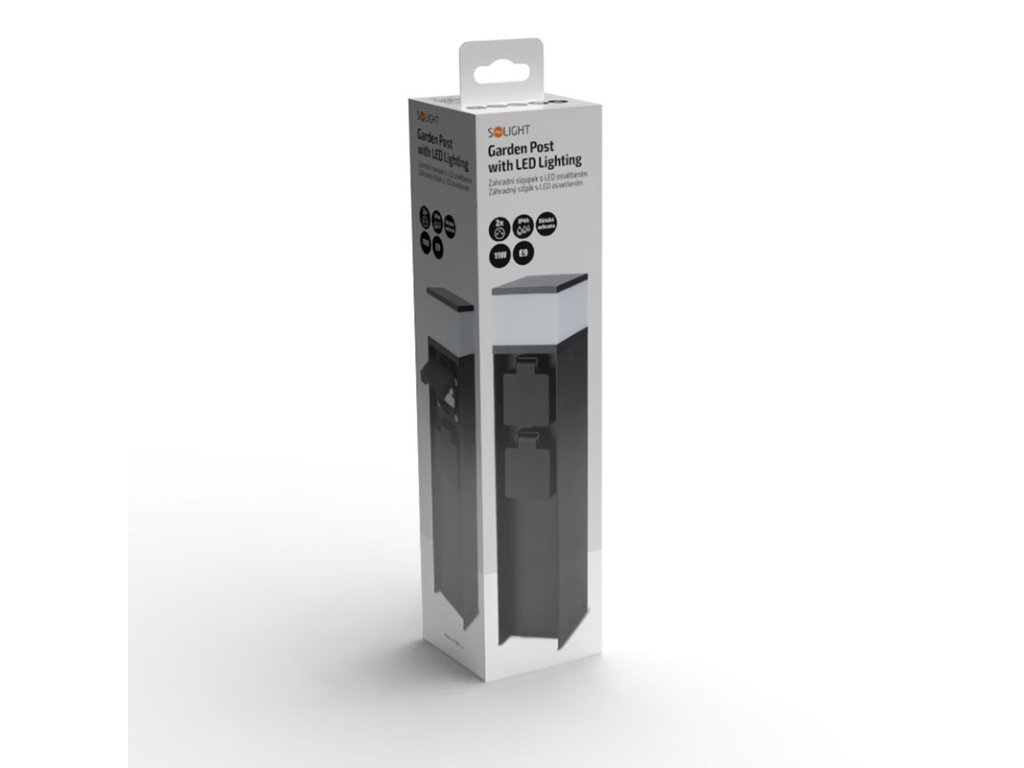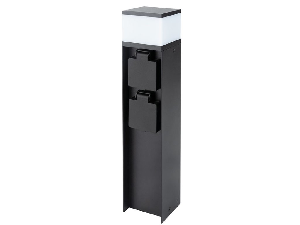 Solight zahradní sloupek IP44 s LED osvětlením, hliník, 2 zásuvky, černý