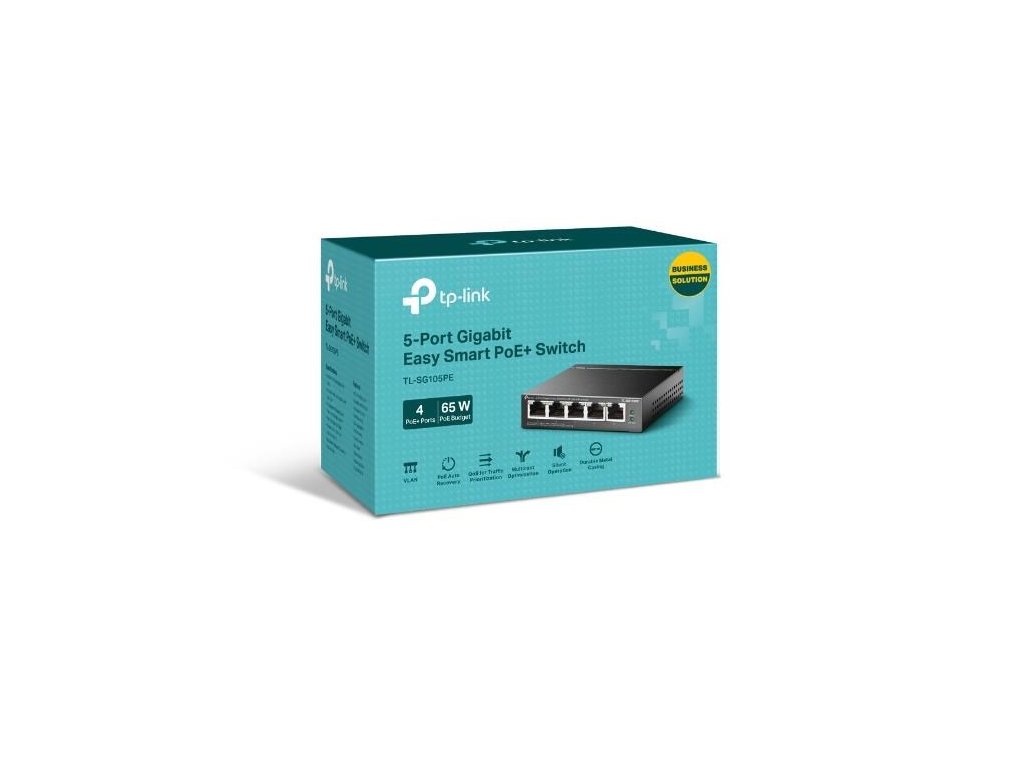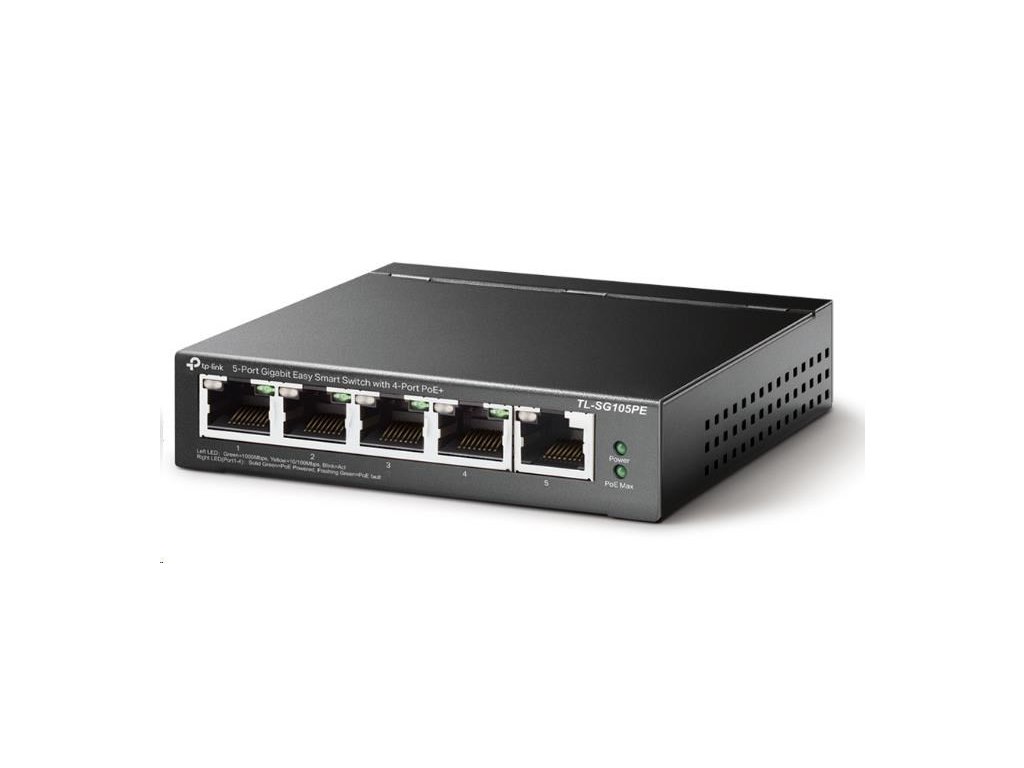 TP-Link Easy Smart switch TL-SG105PE (5xGbE, 4xPoE+, 65W, fanless)