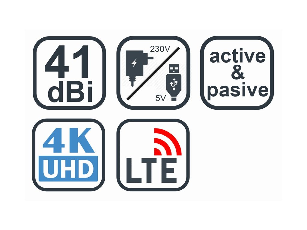 EVOLVEO Xany 2C LTE 230/5V, aktivní pokojová anténa FM/DAB+/DVB-T/T2, filtr LTE
