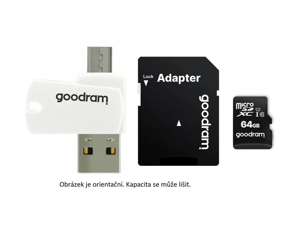 GOODRAM microSDXC karta 64GB M1A4 All-in-one (R:100/W:10 MB/s), UHS-I Class 10, U1 + Adapter + OTG card reader/čtečka