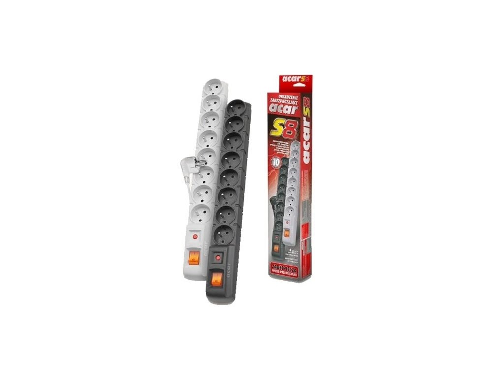 Přepěťová ochrana Acar S8 3m kabel 8 zásuvek, přepěťová ochrana, černá