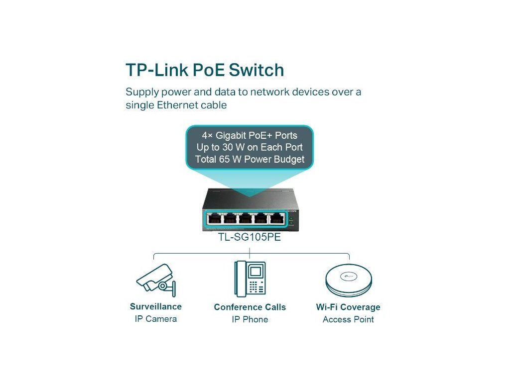 Switch TP-Link TL-SG105PE Easy Smart, 5x GLAN, 4x PoE+, 30W