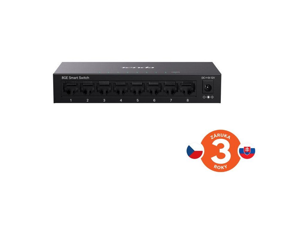 Tenda TEG2208D Websmart L2 cloud managed switch, 8x 10/100/1000 Mbps, Kov, Fanless - bez ventilátorů