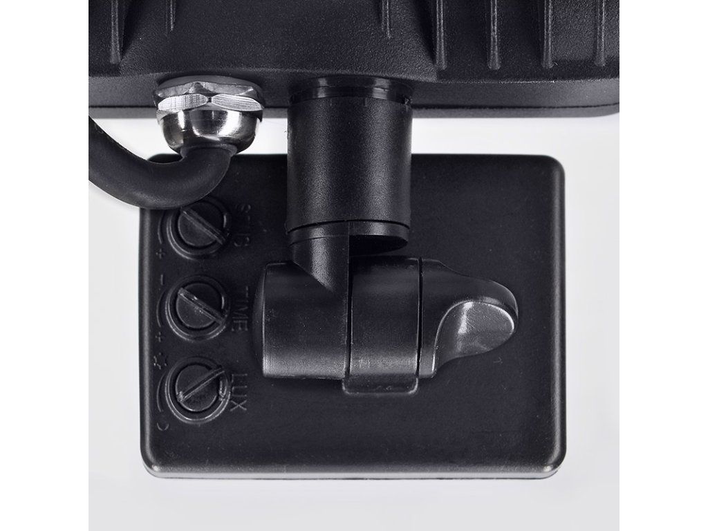 Integrovaný PIR senzor má detekční úhel 120° a dosah až 7 metrů. Uživatel si může nastavit jak dobu svícení (5 s – 10 min), tak světelnou citlivost (3–2000 luxů), což přináší maximální komfort a energetickou úsporu. Tělo svítidla je vyrobeno z odolného tlakově litého hliníku a má krytí IP44, které zajišťuje ochranu proti stříkající vodě.