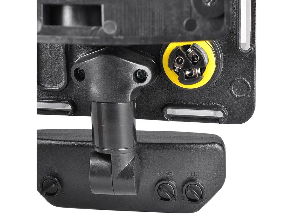 Možnost nastavení času svícení (5 s – 10 min) a světelné citlivosti (3–2000 lux). K dispozici je voděodolný připojovací konektor pro kabel o průměru 4–8 mm. Tělo z hliníku, krytí IP44. Rozměry: 115 × 95 × 45 mm. Napájení: AC 220–240 V, 50 Hz. Energetická třída: F.