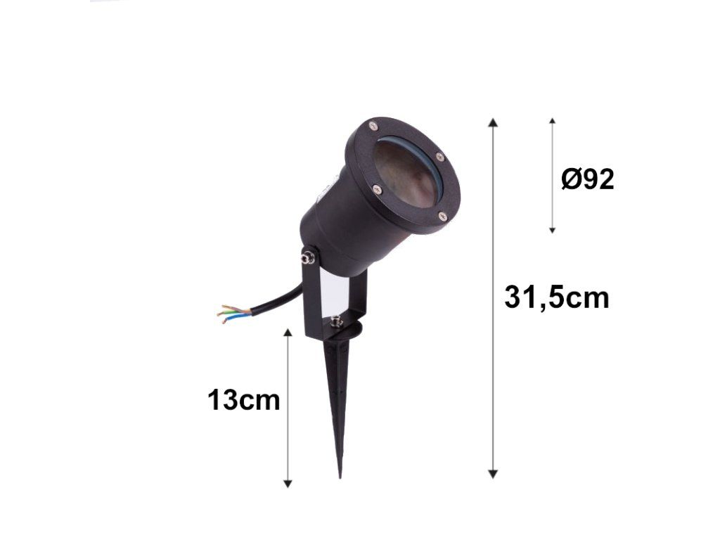 Lampa má 13 cm hrot, který se snadno zapíchne do země. Svítidlo lze také namontovat na budovu jako fasádní osvětlení díky tomu, že hlavici lze kdykoli odšroubovat.